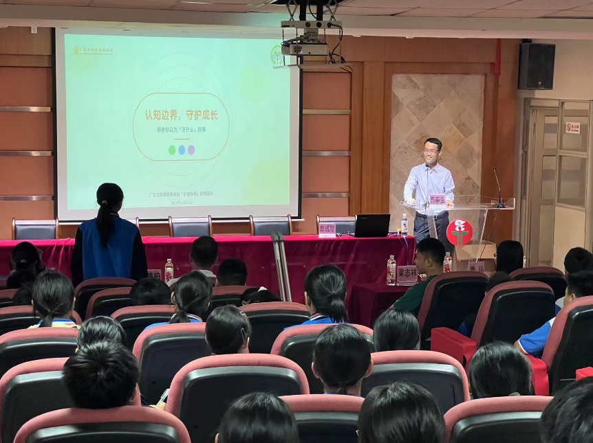 为强化学生的法律意识、维权意识与自我防范能力,引导大家争做知法、懂法、守法的新时代好学生,近日,政协钟村街工作室特邀广东合邦律师事务所护童律师团队,走进广州市番禺区钟村中学开展“认知边界,守护成长”法律知识主题讲座。