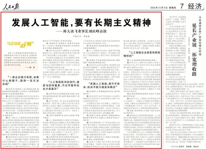 当前,人工智能技术加速迭代演进,正在深刻改变人类生产生活方式、重塑全球产业格局。记者近日走进位于安徽合肥的智能语音和人工智能企业科大讯飞,与公司董事长刘庆峰进行面对面交流,探讨产业发展中的热点问题。